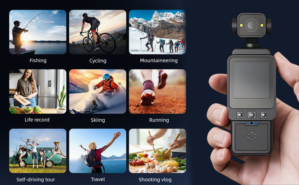 1080P Camera, MultiAxis Stabilization Vlog Camcorder, 270° & 180° Lens Rotation Portable Action Camera, for Outdoor Sport Photography
