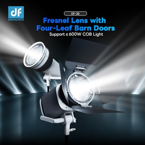 10X Bowens Mount Fresnel Lens with Removable Barn Doors, 10–45° Adjustable Beam Spotlight Modifier for COB Video Light ≤600W, Compatible with Amaran 300 300C, Aputure Storm 400X 600X etc.