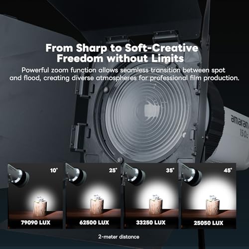 4. Cinematic Light Control – The Fresnel optical lens intensifies output and ensures smooth edge transition, ideal for cinematic storytelling, interviews, and creative lighting.
