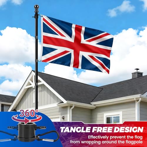 [Tangle-Free Design] The upgraded 360° rotating flagpole ring rotates freely with the wind, effectively preventing flag tangles and jams, ensuring your flag remains elegantly unfurled in the wind for a perfect display. The adjustable ring's fixed position design allows for flexible adaptation to flags of varying sizes