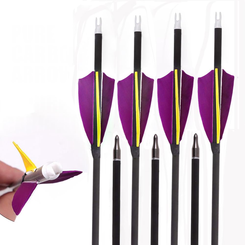 12pc Purple Yellow Micro-rotate Feather Hunting Arrows Spine