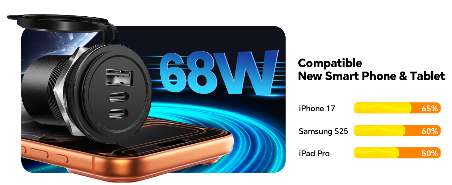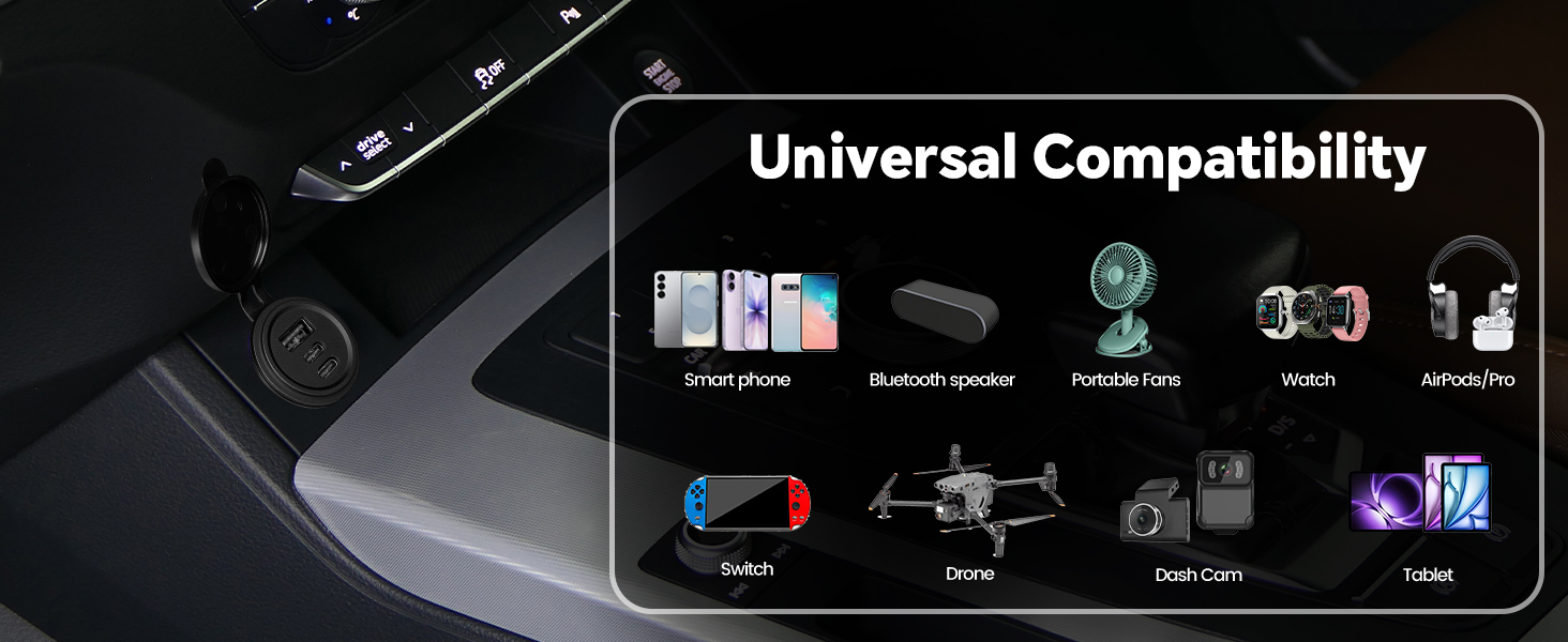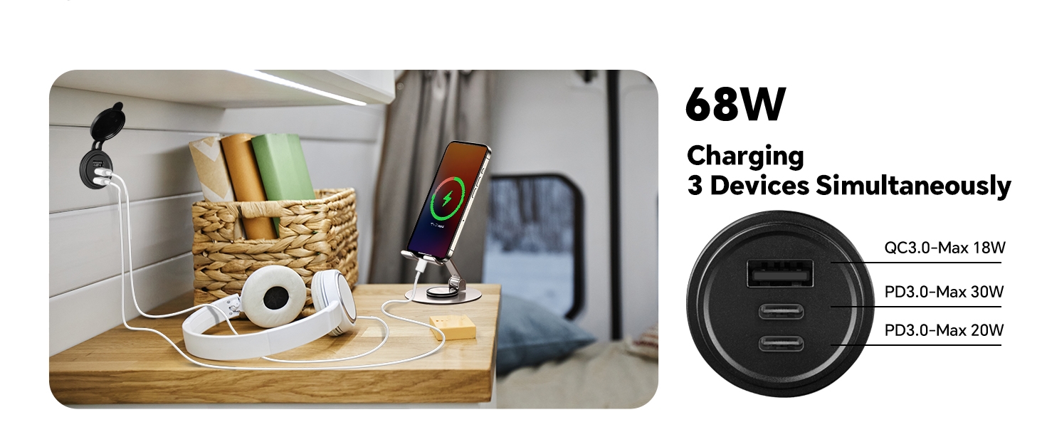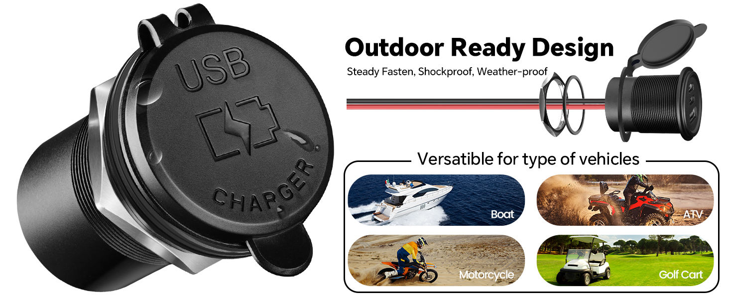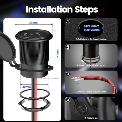 - DC12-24V Wide Applications: The usb c charger socket supports DC10-28V wide range input, fits all 12V-24V vehicles like RV boat camper van motorhome travel trailer truck ATV motorcycle golf cart cars, etc interior application, or any DC12-24V circuits