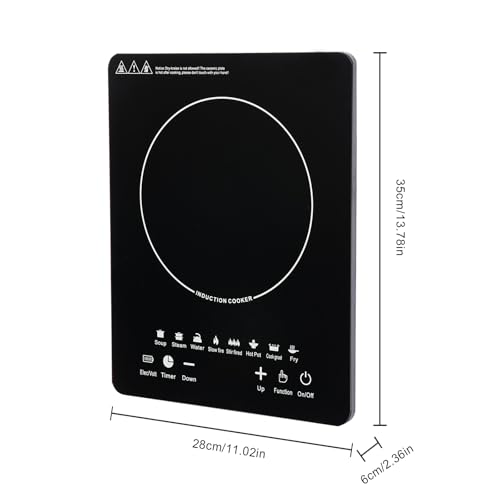 - [Safer Cooking]: It comes with multiple safety protection functions(automatic shut-off, over-heat protection, over-low protection, anti-dry burning, anti-blockage, anti-leakage, and safety cut-out), magnetic induction mode without generating open flames, waterproof and leakproof panel, strong cooling fan and heat dissipation hole can effectively protect safety during operation, so you can use it with confidence.