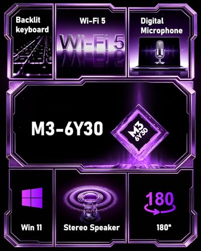 15.6 inch Laptop RAM 16 GB SSD 256 GB Win 11 Pro IPS 1920×1080 M3-6Y30 Notebook Supports TF Card, BT 4.2, USB 3.0, HDMI, Dual Speakers, WIFI 5, 5000mAh, Suitable for Business and Students
