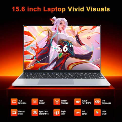 【15.6-inch narrow border & full-size keyboard】This laptop is equipped with a large 15.6-inch Full HD IPS display, 16:9 widescreen display ratio, and narrow border design. The resolution is up to 1920×1080P, which can present realistic colors and gorgeous images, and the unique technology can also protect your eyes from blue light damage. The laptop adopts a full-size keyboard, retaining the independent numeric keypad required for efficient input, and the large touchpad has no borders and can be operated by fingertips.