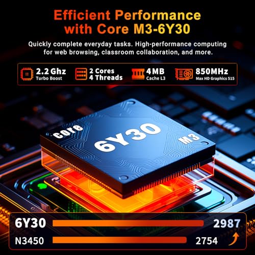 【Core M3-6Y30 processor and Win 11 Pro】This Win 11 laptop adopts the Core M3-6Y30 processor (up to 2.2GHz), which can easily handle daily computing tasks. It adopts a dual-core, quad-thread architecture and integrated graphics card driver, with a low 7W TDP design. This laptop provides response speed when handling multitasking, browsing and daily tasks without slowing you down. Pre-installed with Win 11 Pro, this laptop offers reliable and stable system performance, as well as astonishing loading and processing capabilities, ensuring a smoother and more reliable experience.