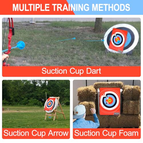 [SAFETY & COMPATIBILITY]: For your safety and to protect the target, use only soft adhesive bullets, suction-cup arrows, or foam darts. ⚠️ Do not use metal arrows, hunting arrows, or hard BBs to avoid potential damage, ricochets, or injury. Ideal for safe indoor/outdoor archery training and family fun with low-impact projectiles.
