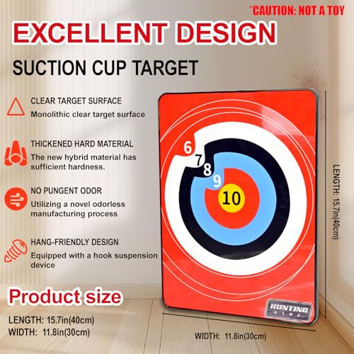 [CLEAR TARGET SURFACE]: 40*30cm/15.7*11.8in Integrated faceplate ensures a flat surface for powerful vacuum suction. Securely holds Suction Cup arrows with reliable stick and minimal bounce-outs. Ideal for indoor/outdoor training. Track progress with each visible, perfectly placed shot.