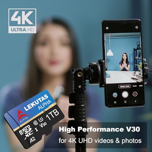 LEKUTAS 1T(999GB) Micro SD Card, microSDXC UHS-I Flash Memory Card TF Card, High Read Speed 120MB/s, C10, U3, A2, V30, for Full HD, 4K UHD Video Recording