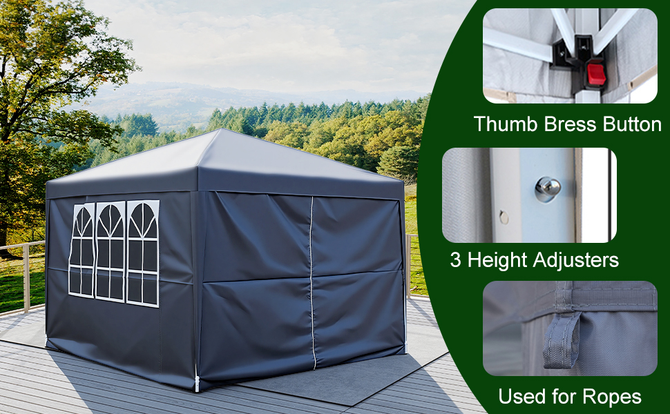 These sidewalls can be easily attached or removed depending on your needs, offering flexibility for various weather conditions and privacy requirements.