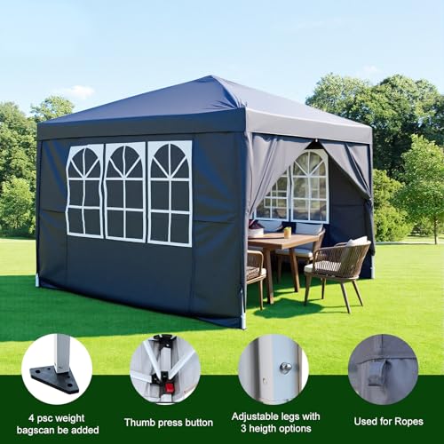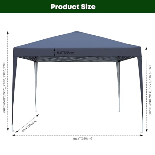 - SPACIOUS COVERAGE: 2.5×2.5 metre pop-up gazebo provides 6.25 square metres of sheltered space, with adjustable legs offering 3 height options and a peak height of 94.5 inches (240cm) for versatile outdoor use