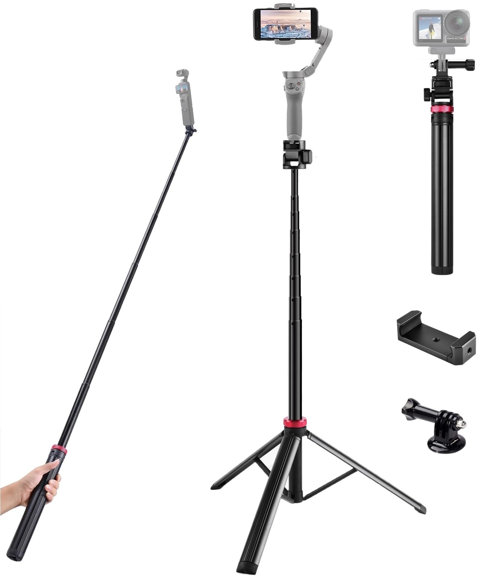 - Versatile Compatibility: Equipped with a 1/4-20 screw, this tripod stand can be easily connected to Osmo Mobile, Osmo Action cameras,Osmo Pocket,Webcam,portable recorder,fill lights, cameras, mobile phone clips, action cameras, and other equipment, allowing for multiple uses.