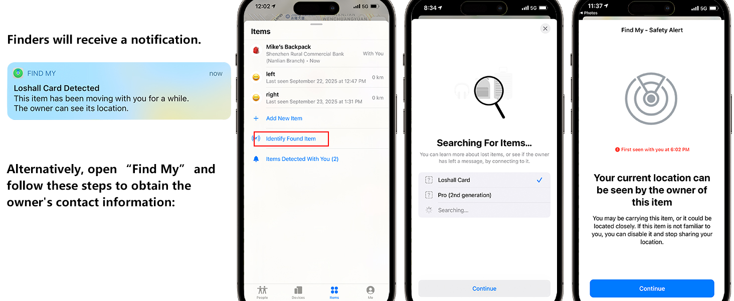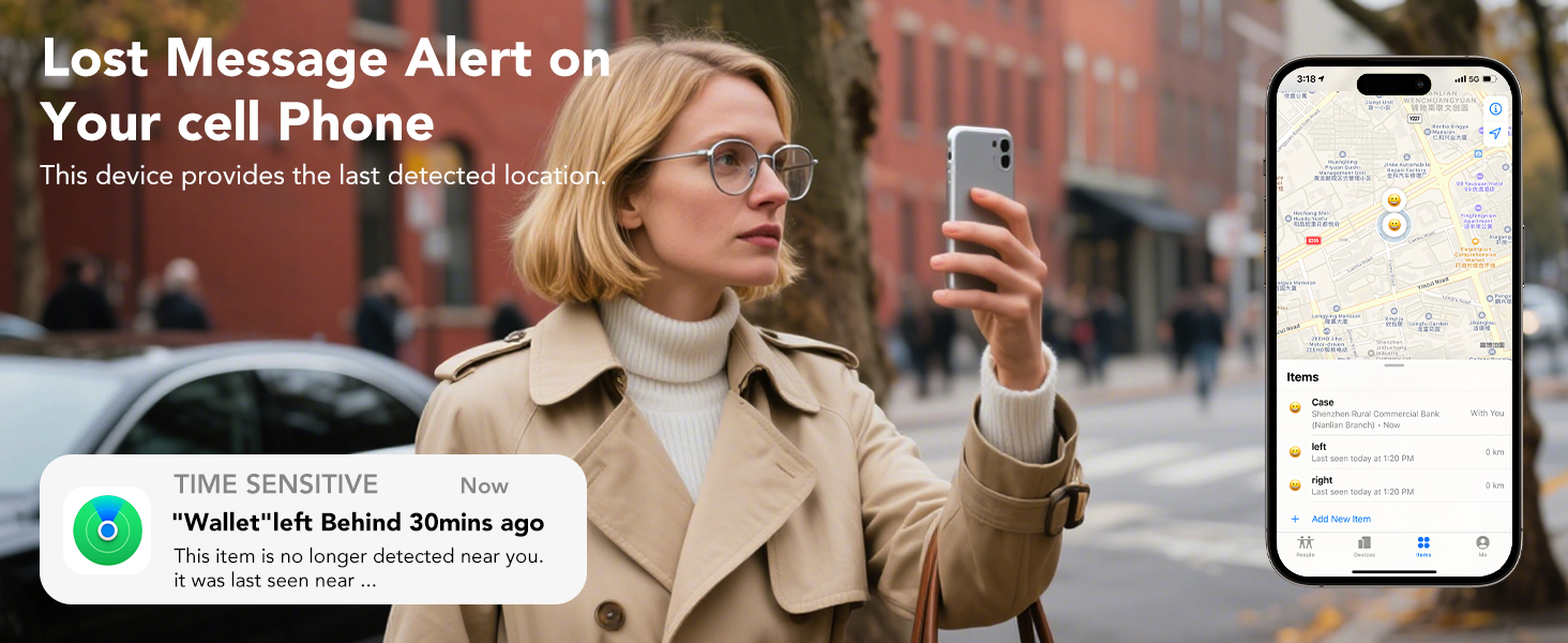 6. Smart Anti-Loss Alert: When the wallet tracking card exceeds a 130-foot range, receive instant notifications via the “Find My” app. It displays the last known location of the card 30 minutes prior—whether on streets, in malls, or other unfamiliar areas.