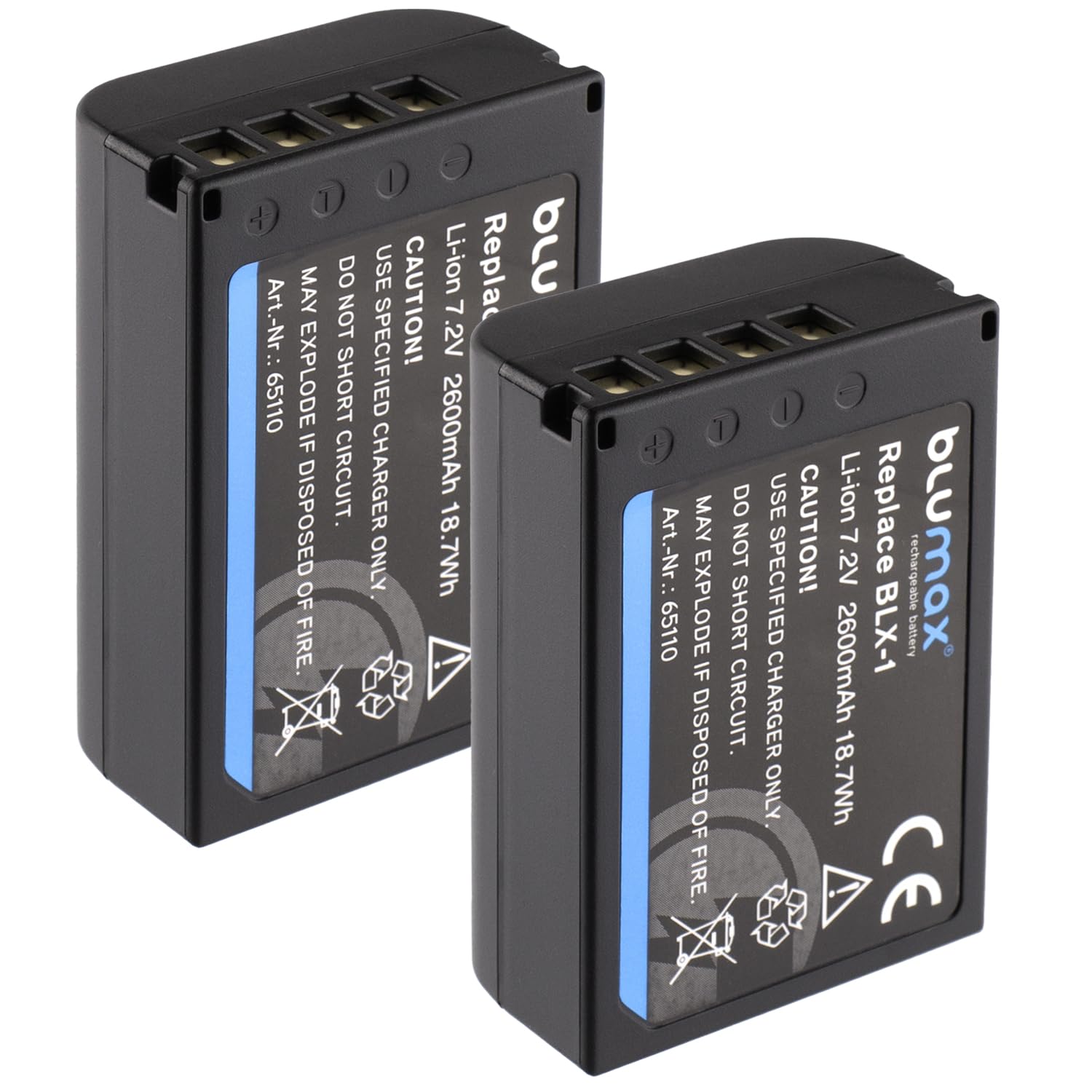 2 x Blumax Battery Compatible with Olympus BLX-1 | 2600 mAh