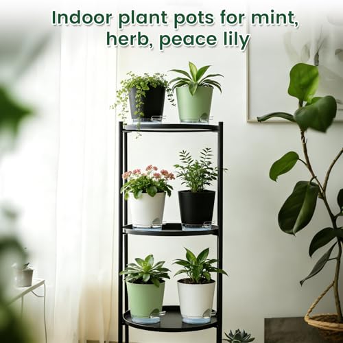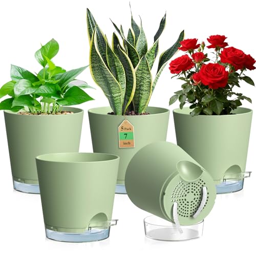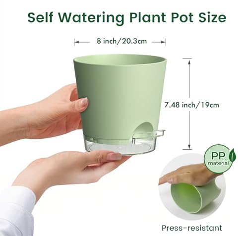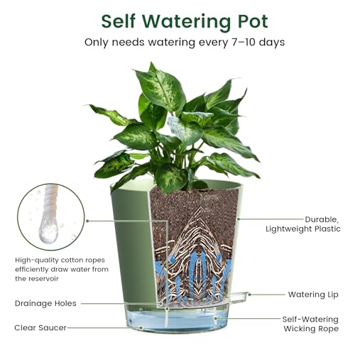 【Self-Watering Design】These 8 inch self watering pots indoor feature a wick rope that delivers water directly to the roots, keeping soil moist for 7–10 days and reducing frequent watering. This set of 5 easy-care self watering plant pots indoor is perfect for busy or forgetful gardeners