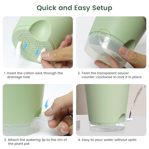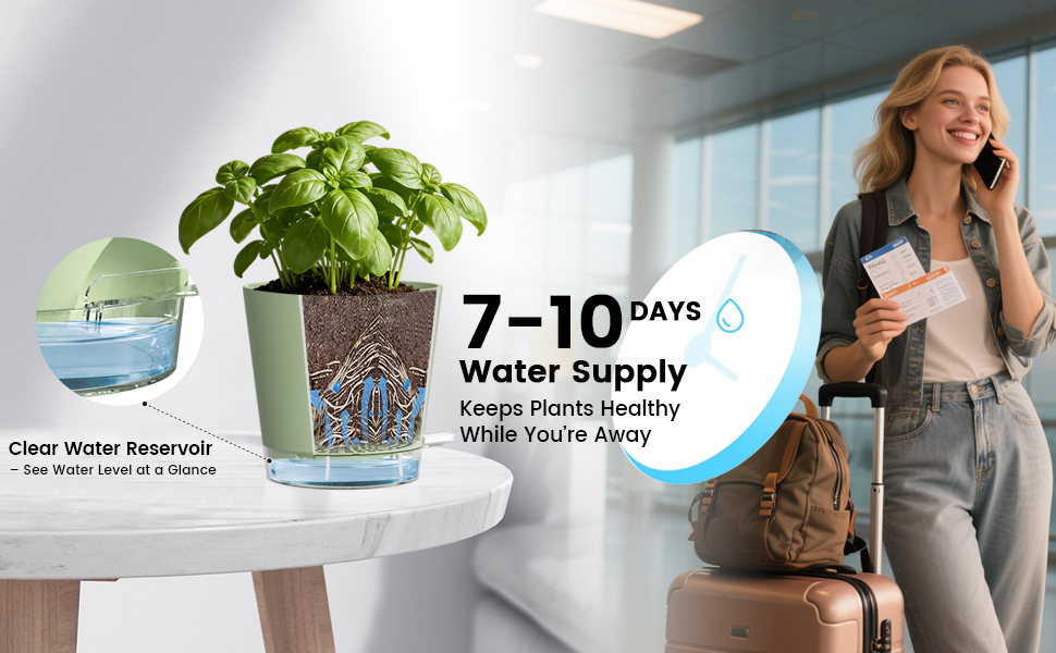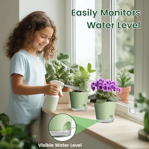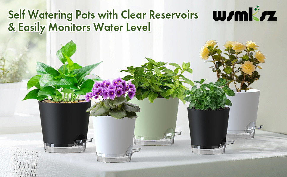 【Visible Water Level】The clear water reservoirs on these self watering plant pots let you monitor the water level at a glance, helping prevent overwatering and showing when to refill. The self watering planters with detachable reservoirs catch excess water to keep countertops clean and dry