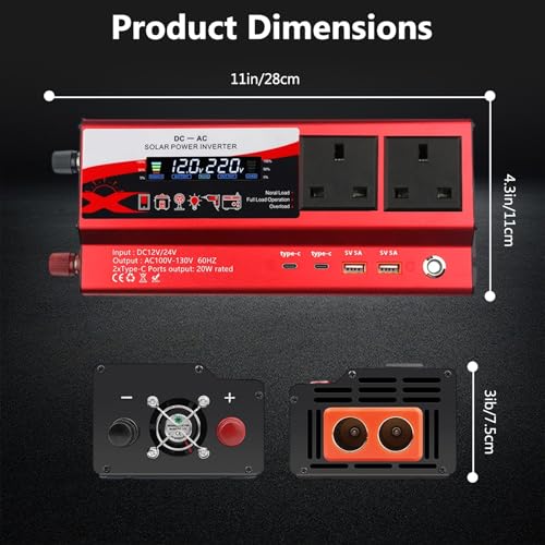 - Eight-Level Protection: This 12V to 220V inverter, constructed from robust aluminium alloy, incorporates eight-level protection. This includes reverse polarity, short circuit, high temperature, high voltage, overload, low voltage, overcurrent, and surge protection, effectively safeguarding both your devices and vehicle.