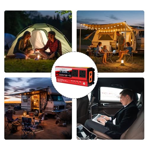 - Multi-Port Design: This power inverter features two Type-C ports, two USB ports, two sockets, and two cigarette lighter sockets, enabling simultaneous charging of multiple devices. Note: Ensure the total power consumption does not exceed the inverter's rated power of 900W.