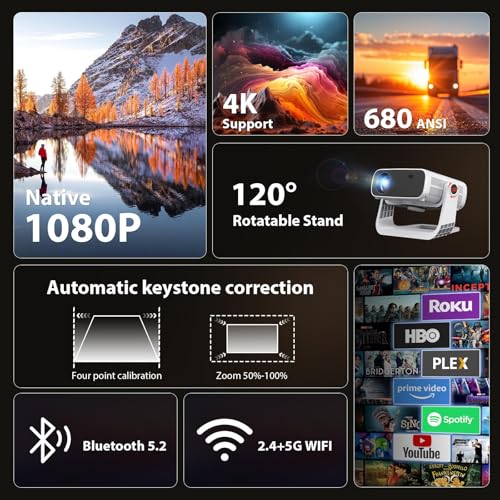 - 【Native 1080p & Support for 4K Content – Stunning Clarity and Detail】Enjoy crisp 1080p visuals with full support for 4K videos, delivering cinema-quality clarity. Perfect for movie nights, outdoor screenings, or gaming, making every image vibrant and lifelike.