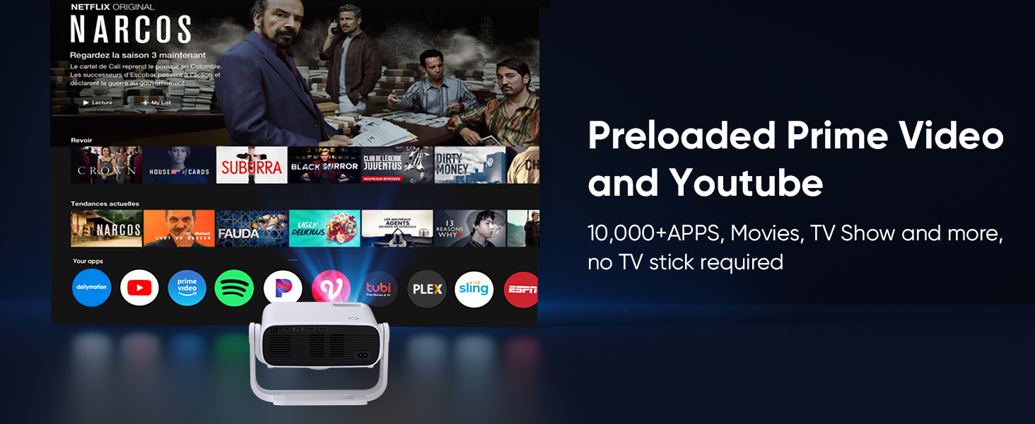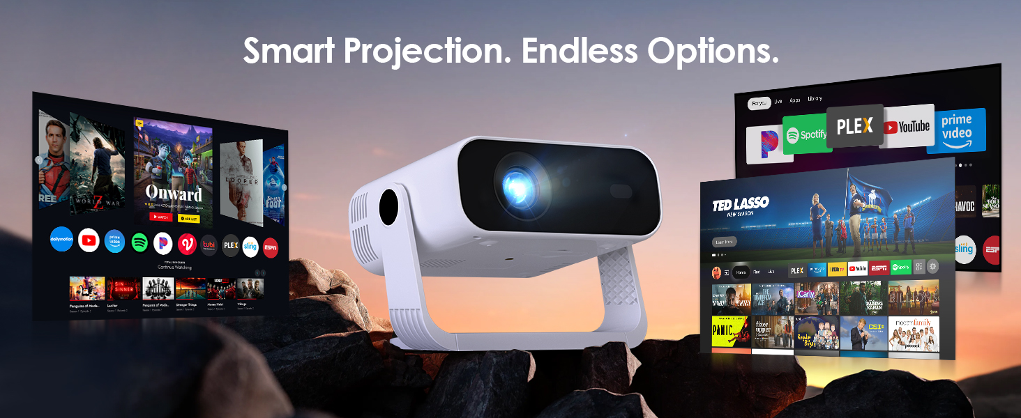 Since some streaming content (Hulu, Disney, Netflix, etc.) is copyrighted and cannot be mirrored from smartphones, please use the built-in apps like Netflix, YouTube, or Prime Video to play such videos directly on the projector.