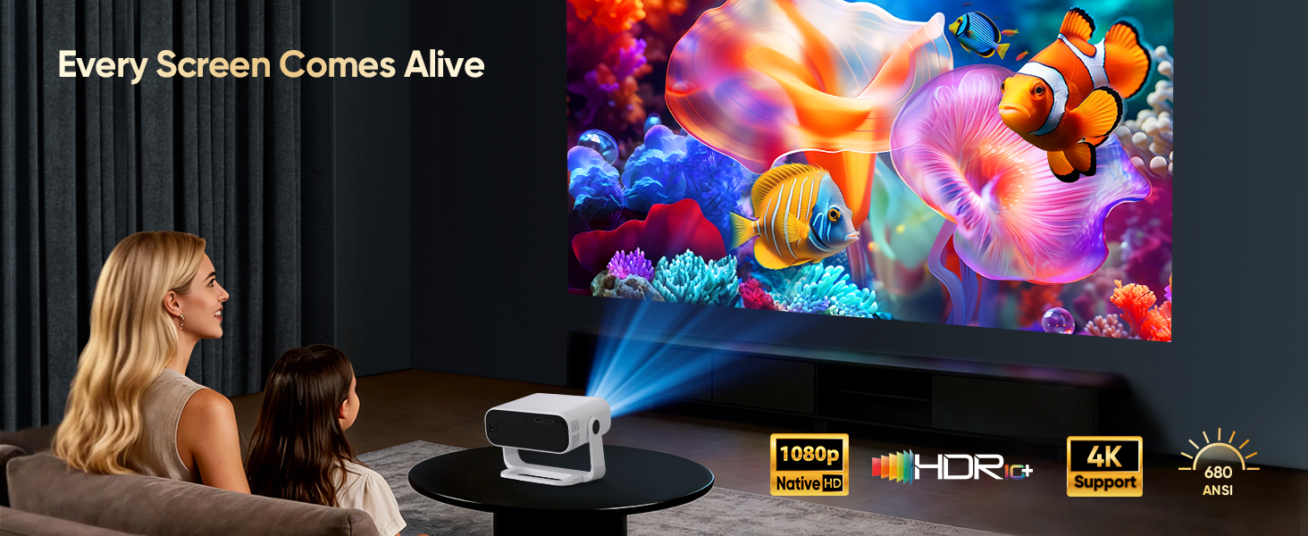 - 【Native 1080p & 4K Support – Cinema-Quality Clarity】 Experience crisp native 1080p visuals with full 4K content support. Enjoy stunning detail and lifelike images, perfect for movie nights, gaming, or outdoor screenings.
