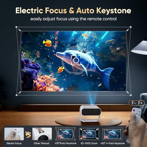- 【Auto Keystone & 50% Size Adjustment – Effortless Setup】 Features automatic 4-point keystone correction and adjustable projection size for quick, flexible setup in any space. Easily customize the image to fit your screen or wall—no hassle, just a perfect view.