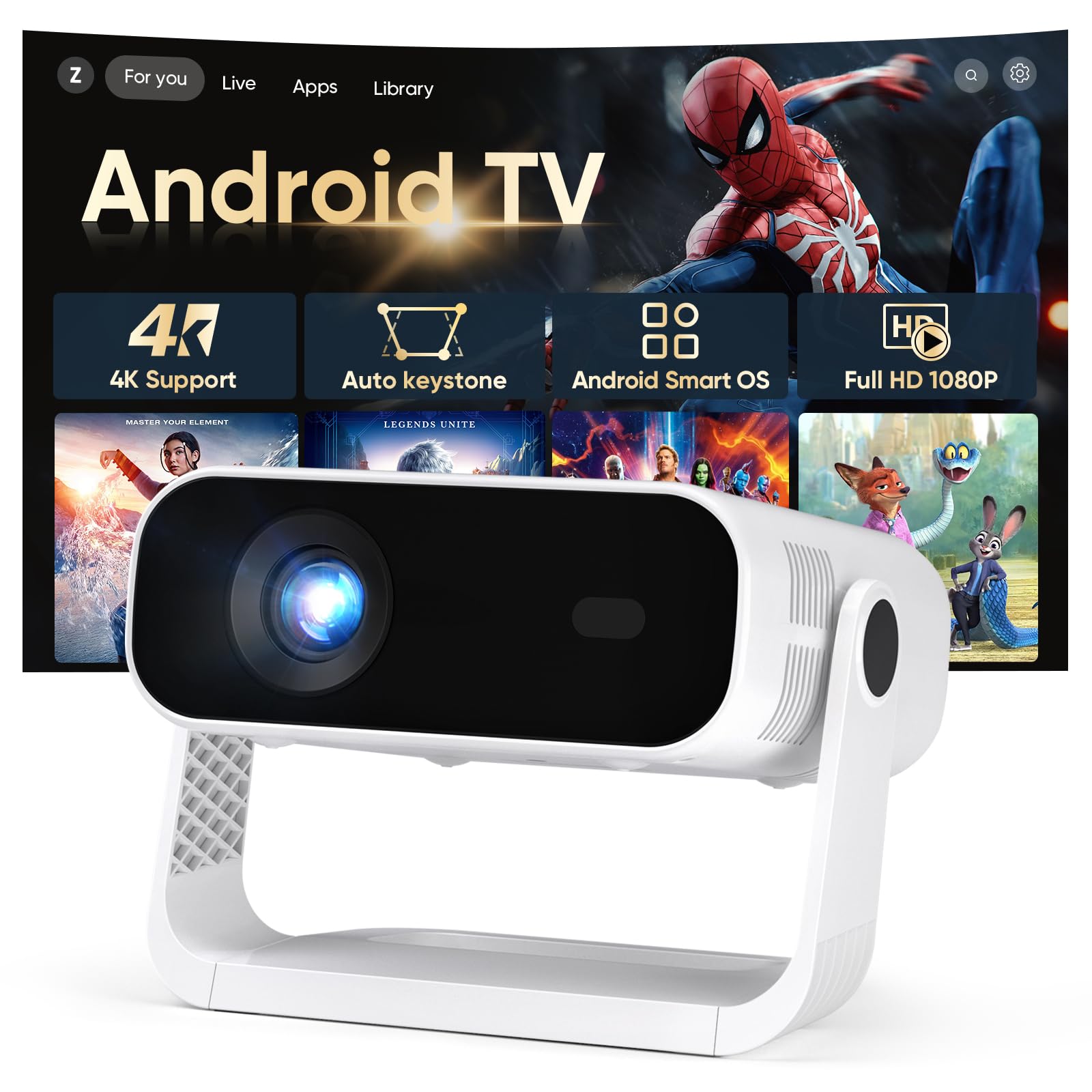 2026 New Smart Projector Built-in Apps, Android 14, Native 1080P 4K Supported WiFi 6 Bluetooth 5.2, 30000 Lumens, Low Fan Noise (<30dB), Home Cinema Projector for iOS/Switch /PS5