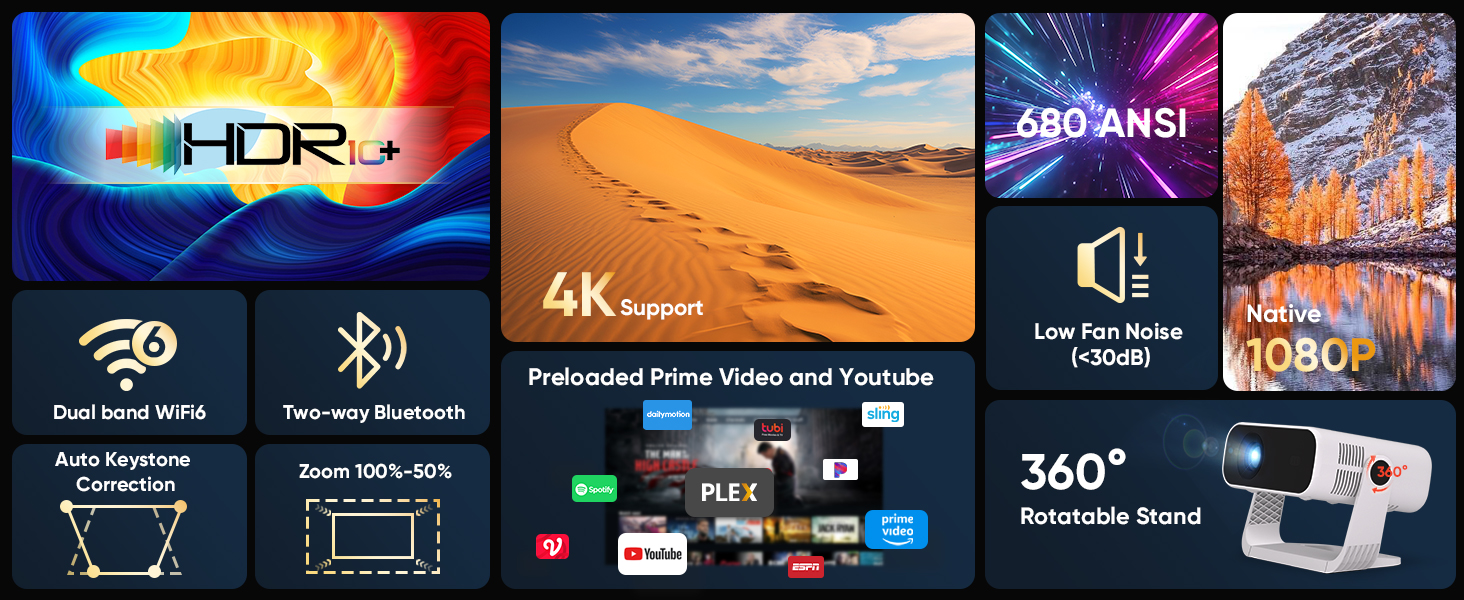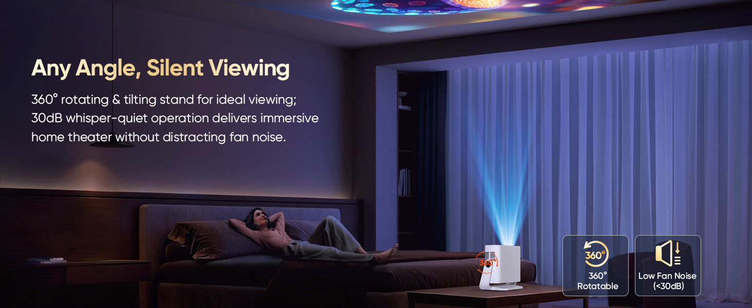 - 【Low Noise Design (<30dB) – Quiet, Immersive Viewing】 Built with advanced cooling technology, it operates at under 30dB for near-silent performance. Enjoy movies or presentations without distractions—even in quiet settings.