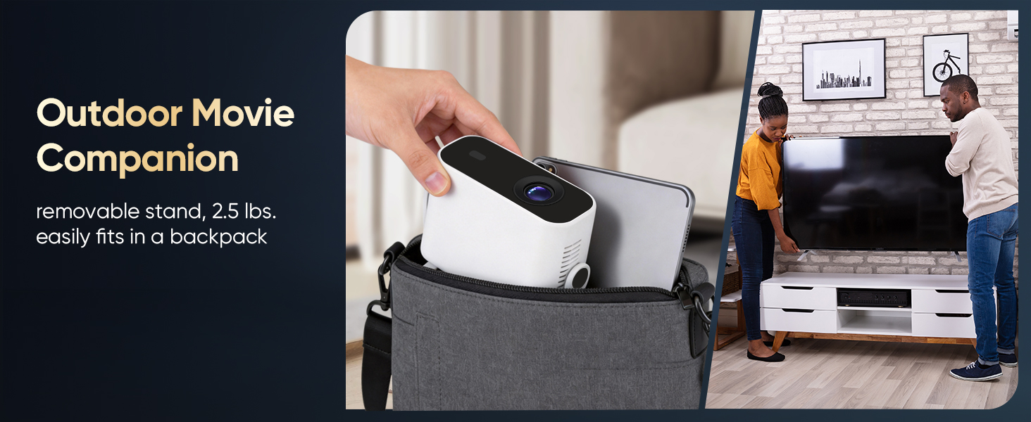 - 【360° Adjustable Stand – Flexible Viewing Angles】 The tool-free 360° adjustable stand lets you project onto walls, tents, or ceilings from virtually any angle. Perfect for home, backyard, or outdoor adventures.