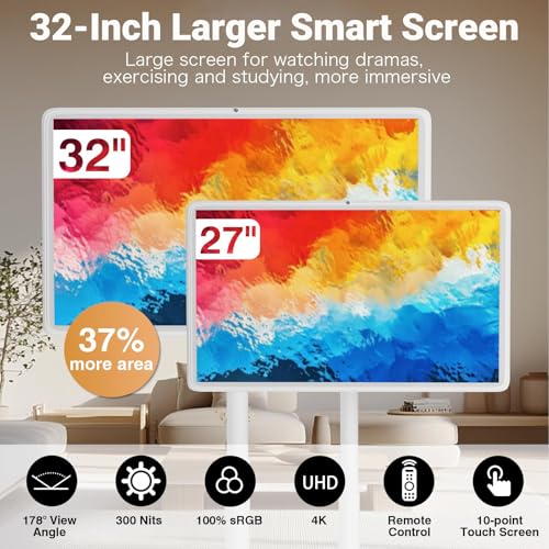 21.5″/24″/27″/32″ Portable Rolling Tv, 1080p/4k Smart Portable Wireless Touch Screen Tv On Wheels, 4+64gb/8+128gb,With Large Display, Larger Battery Up To 5-8hr,60hz Refresh Rate 32IN-8+128GB(1080P)