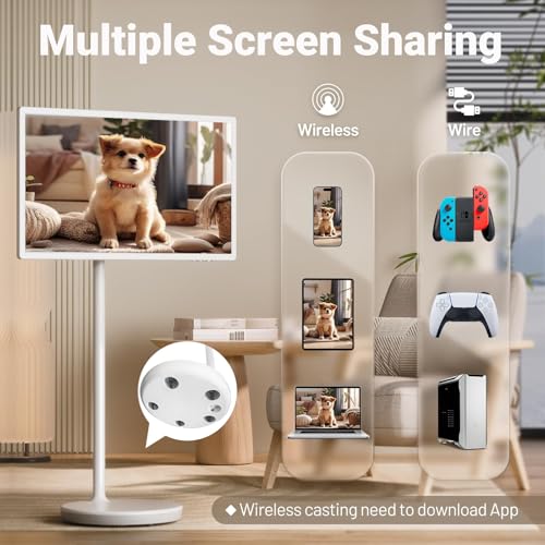 ✧ Portable TV, 21.5/24/27/32-inch 1080P/4K Portable Smart Monitor, Touchscreen TV, Rotatable Touchscreen Mobile Smart TV, Floor Standing Mobile Smart TV
