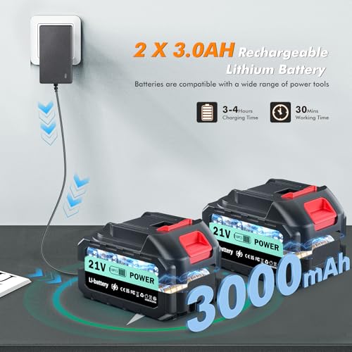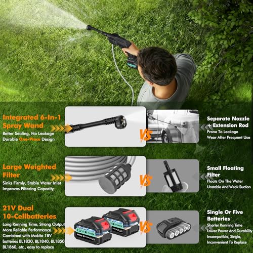 【Upgraded 10 Battery Version】: The portable high-pressure washer comes with two lithium-ion batteries and a 21V fast charger, providing up to 30 minutes of runtime and a 3-hour charging time. This high-range portable cordless car washer eliminates worries about running out of power when washing outdoors.