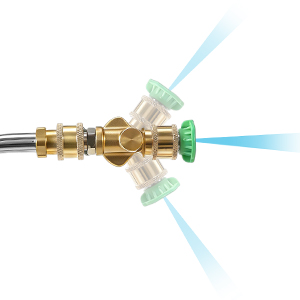 Different coloured nozzles are designed for specific spray angles and cleaning tasks.