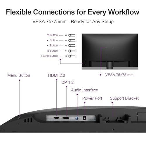 【Flexible Setup】Square base for stability, tilt adjustment, and 75x75mm VESA mount allow this 27 inch full HD monitor to adapt to your needs. (Please note: this model does not include built-in speakers)