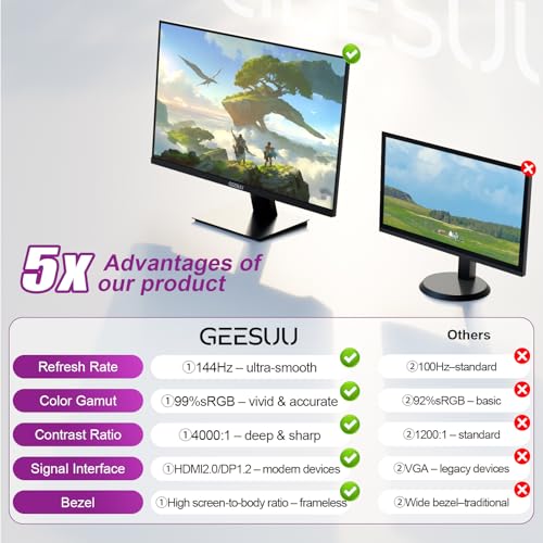 【Smooth Multi-Tasking】144Hz refresh + HDMI 2.0/DP 1.4 enable stable multi-screen 27 inch monitor use for trading, data analysis & office