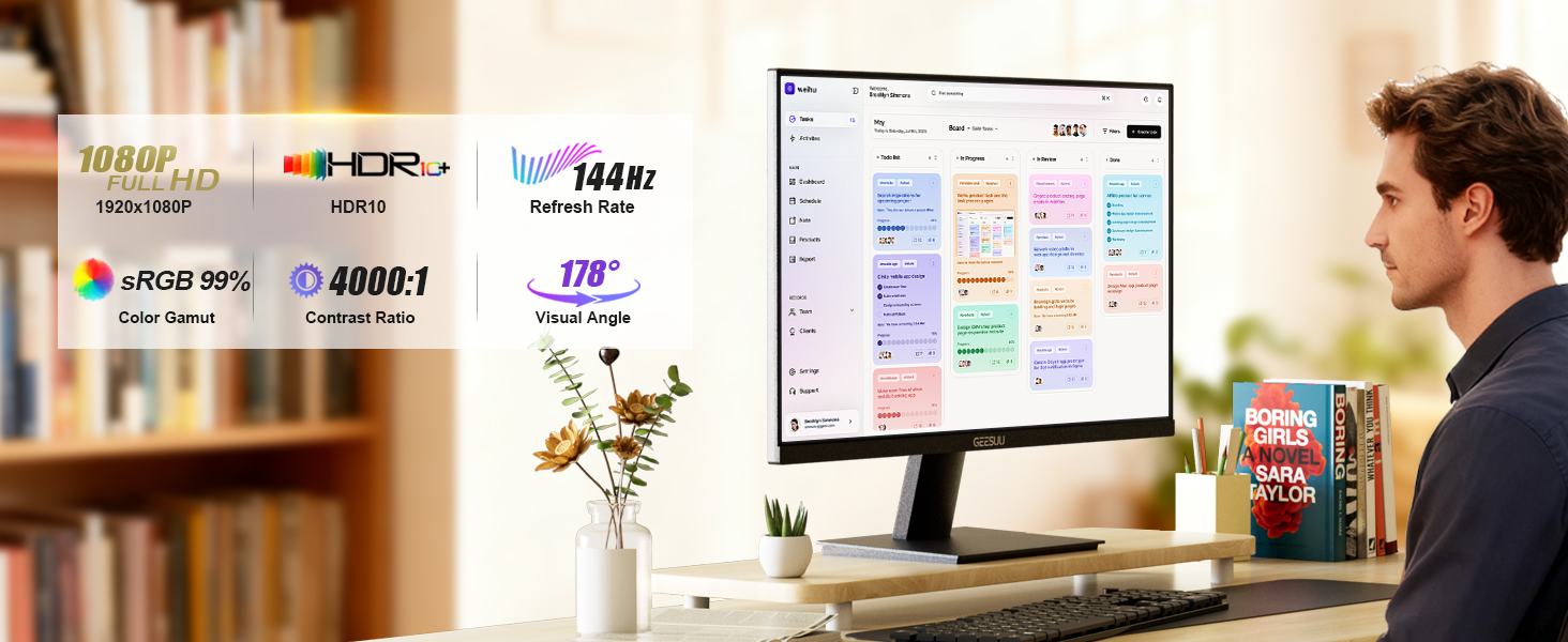 【Slim & Space-Saving Design】Ultra-slim bezel with hidden ports keeps the desk tidy; this monitor 27 inch 144Hz fits compact office, study, or shared workspace and comes with an electronic manual for quick setup