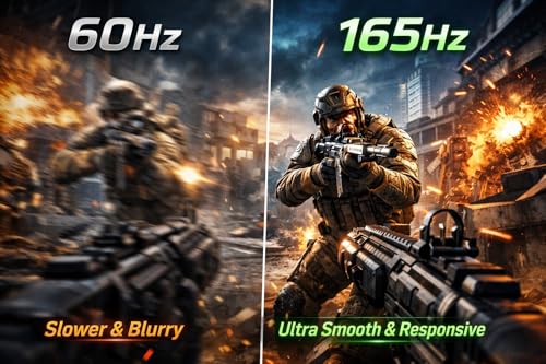 - 【165Hz Performance & Ultra-Smooth Response】: Supports up to 165Hz refresh rate via DisplayPort 1.4 with 1ms (MPRT) response time for smooth, responsive gameplay. Adaptive Sync minimizes tearing and stuttering. HDMI 2.1 ports support standard refresh rates for console gaming. Note: Maximum refresh rate requires compatible graphics card, cable, and system settings.