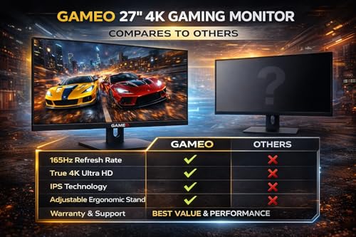 The GAMEO 27-inch 4K Ultra HD IPS Gaming Monitor is built to deliver ultra-sharp visuals, smooth high-refresh-rate performance, and versatile connectivity for gaming, creative work, professional use, and trading.
