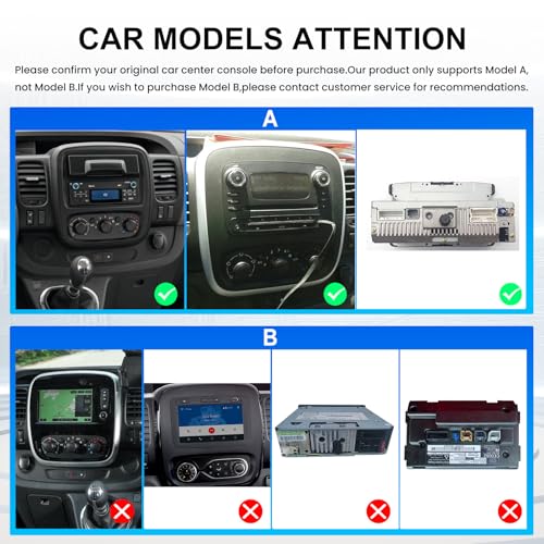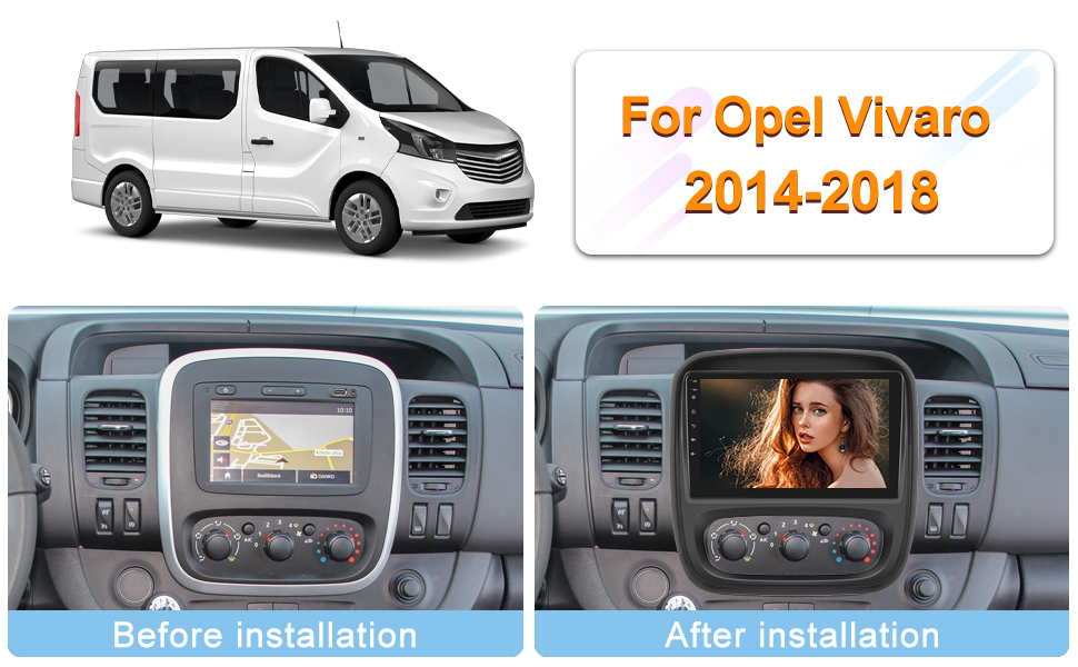 【Vehicle Compatibility】The Android car radio for Opel Vivaro B 2014 2015 2016 2017 2018. Please confirm your Car Model / Year / Shape of The Center Console with our Installation Photo (If your original vehicle comes with a large screen, it is not compatible). If you are not sure, please contact us via Amazon Order or our Store Name