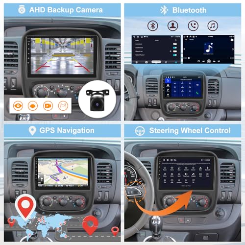 【Android System & HD Better Display】This Opel Vivaro stereo comes with a 4-core CPU, 2GB RAM + 64GB ROM and the latest Android system, making the Opel Vivaro radio performance even better. You can get more apps from the APP Store. 2.5D tempered glass protection, 9-inch capacitive touchscreen, 1080P HD larger and clearer screen, give you wonderful visual experience