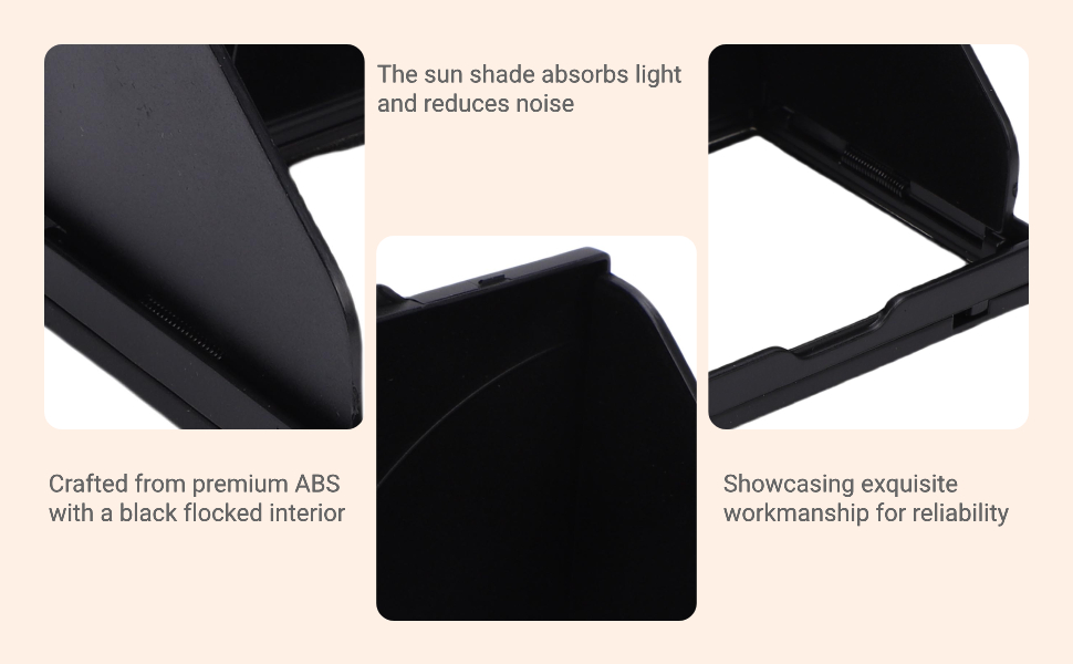 ABS Flocking Materials: Crafted from premium ABS with a black flocked interior, the sun shade absorbs light and reduces noise, showcasing exquisite workmanship for reliability.