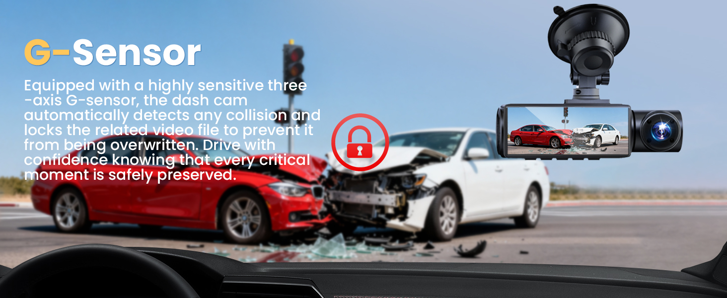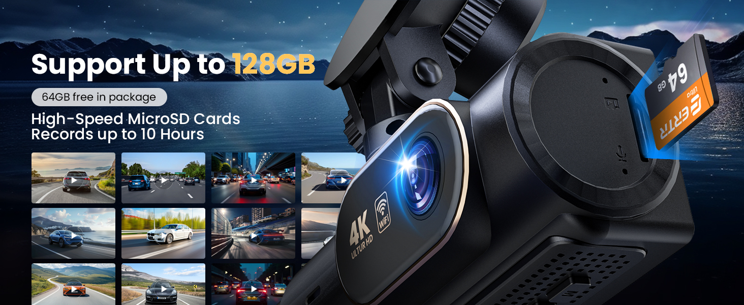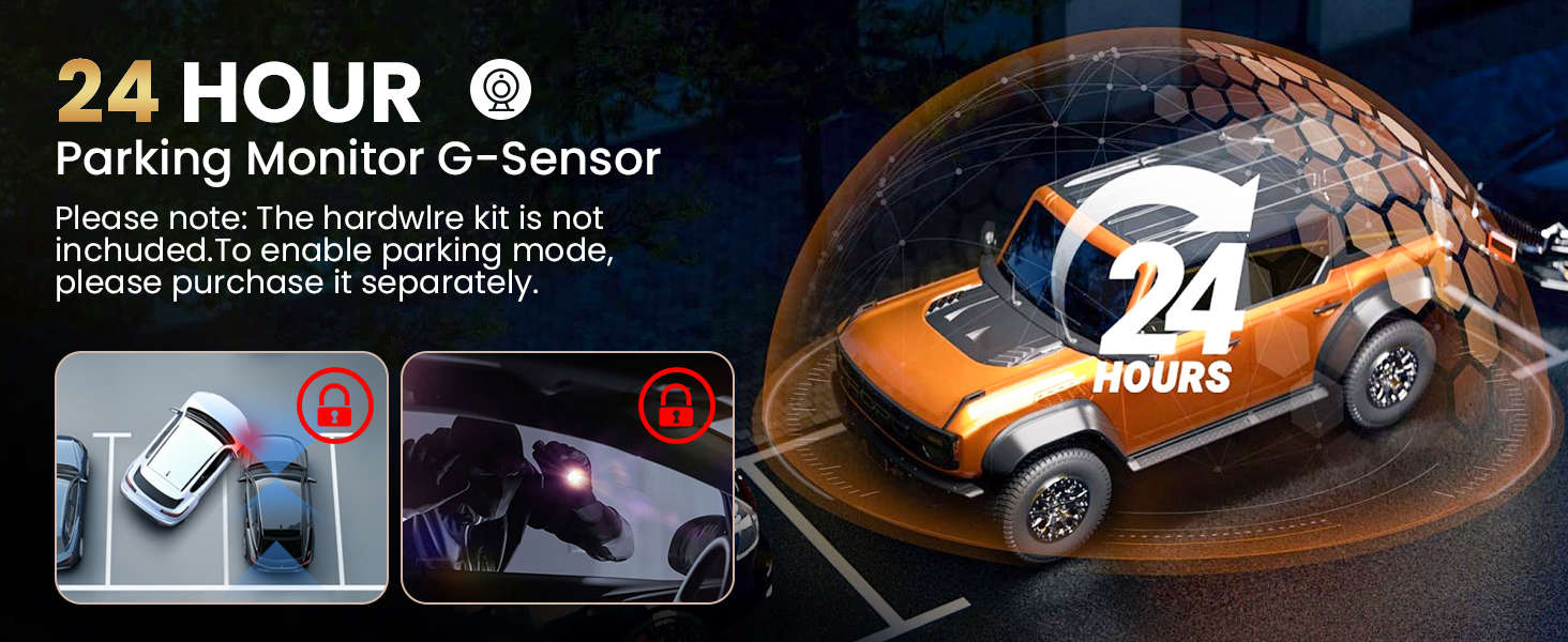 【G-Sensor & Automatic Loop Recording】The built-in G-sensor detects sudden impacts or collisions and immediately locks the relevant footage in a protected folder, preventing overwriting. Includes a 64GB Micro-SD card. Recording starts automatically with your engine and saves in manageable clips. When storage is full, the oldest files are cycled out, ensuring continuous, worry-free recording.
