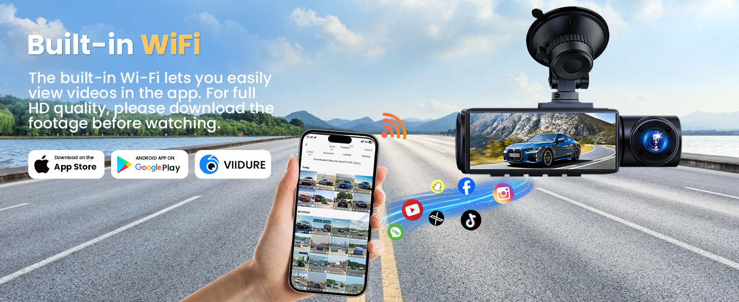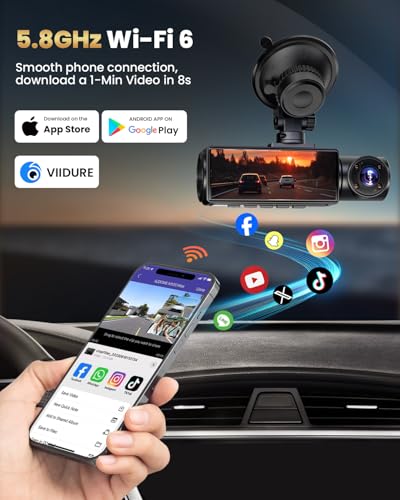 【Wi-Fi & App Control】Connect seamlessly via built-in 5GHz Wi-Fi and use the [Viidure] app to preview, replay, download, and share videos directly on your smartphone. For the full HD viewing experience, we recommend downloading footage before playback.
