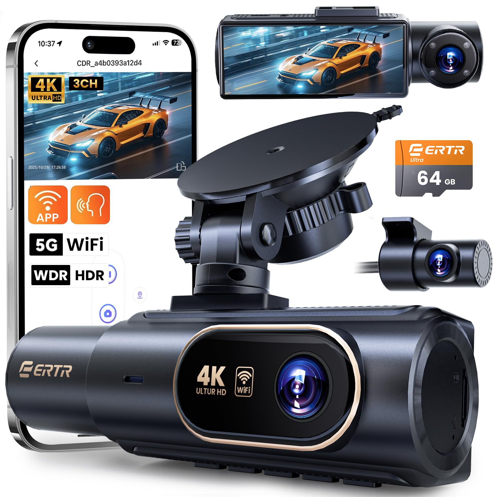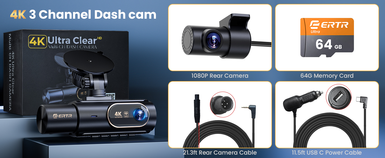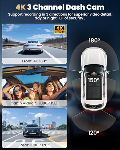 【Triple-Lens Clarity with Wide-Angle Coverage】Our Dash cam experience all-around visibility with a triple-camera setup: a 4K front camera, plus 1080P interior and rear cameras. With 170° ultra-wide view, minimizing blind spots across multiple lanes. Ideal for everyday driving, ridesharing, or taxi services, this system ensures complete recording of the road, cabin, and rear views.