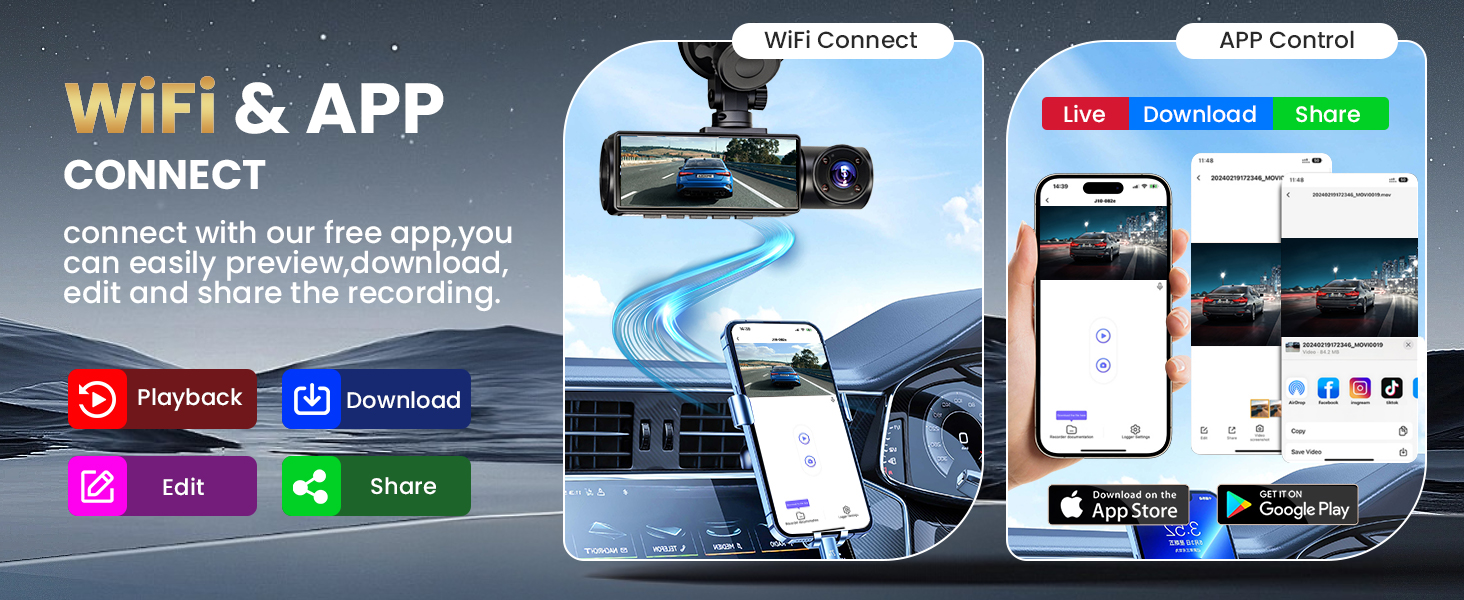 【Reliable & Built for All Seasons】Designed to perform steadily through extreme temperatures—from freezing winters to scorching summers—this dash cam resists overheating, swelling, or failure. For your privacy, Wi-Fi turns off automatically if not connected within 2 minutes. Simply long-press the “▲” button to re-enable Wi-Fi when needed.