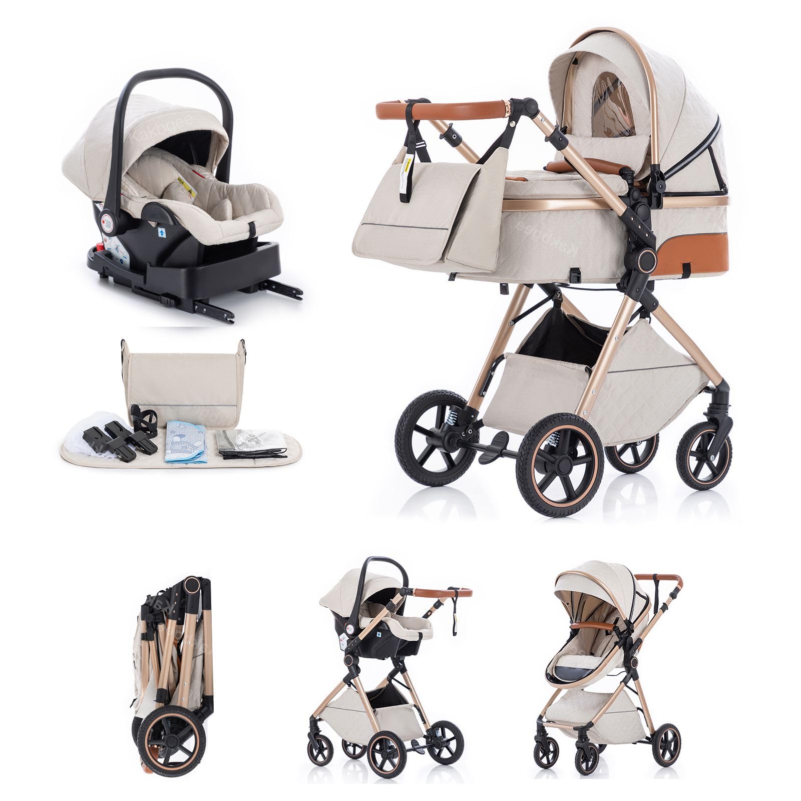 3 in 1 Travel System, Foldable Pram, 7 Height-Adjustable