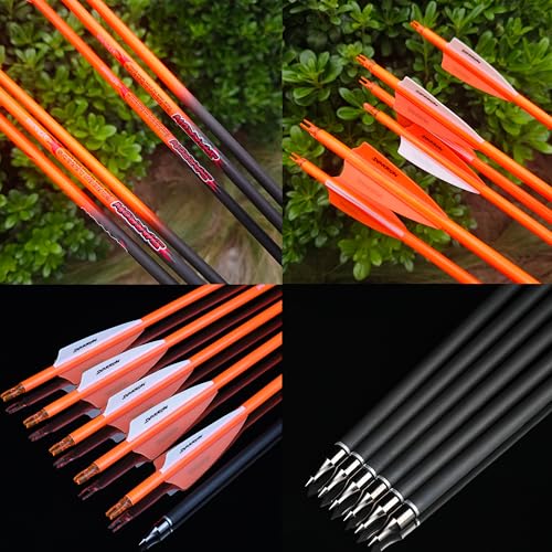【Material】pure carbon arrows, not easy to bend and break, light weight, easy to be accelerated by the Draw Weight of the bow, the molecular structure of carbon fiber is stable and not easy to be damaged. Meanwhile, you can make personal customization according to the parameters of the arrows you want.