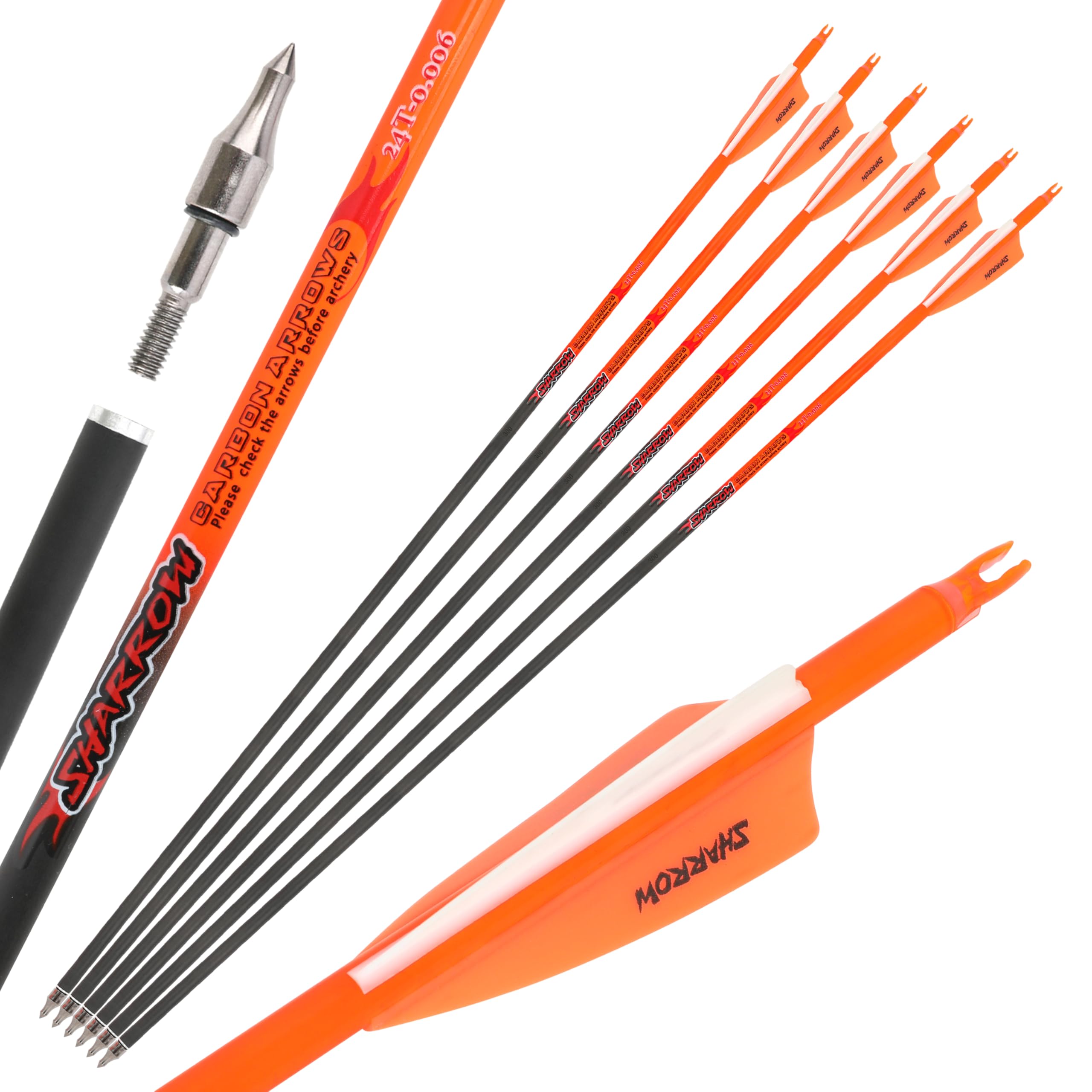 Product Details: Material: Pure Carbon Feather Color: 2 orange and 1 white 3-inch Shield Rubber Feather Disturbance: 300 Disturbance Arrow Tail: Inserted Arrow Tail ID: 6.2mm OD: 7.2mm Overall Length of Arrow: 85cm Standard Length: 82.1cm Arrow Shaft Length: 32 inches (without Arrow Tail) Weight: Approx. 28.4g (1pcs) Arrowheads: 100 Grams Meanwhile, you can make personal customization according to the parameters of the arrows you want. Note: The above parameters are all manual measurements and picture color may have error, the specific information please prevail in kind.