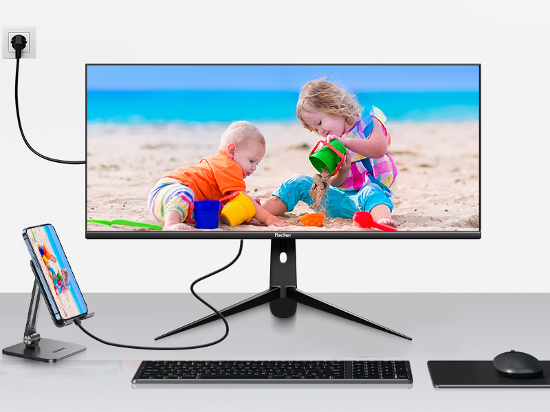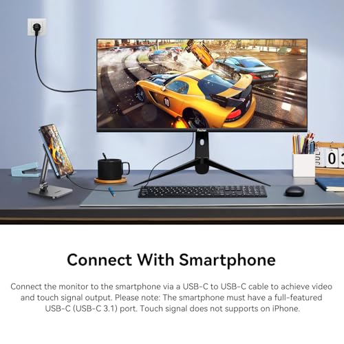 - Full-Featured USB-C Port for Convenient Connection to Smartphones: This 34 inch large touch display has a full-featured USB-C port, which can be easily connected to smartphones via a USB-C to USB-C cable for signal transmission and touch functionality. It can support screen mirroring mode and computer mode after connecting the smartphone to the monitor. Please Note: The touch functionality of this 34 inch touch monitor does not supports on Apple devices.