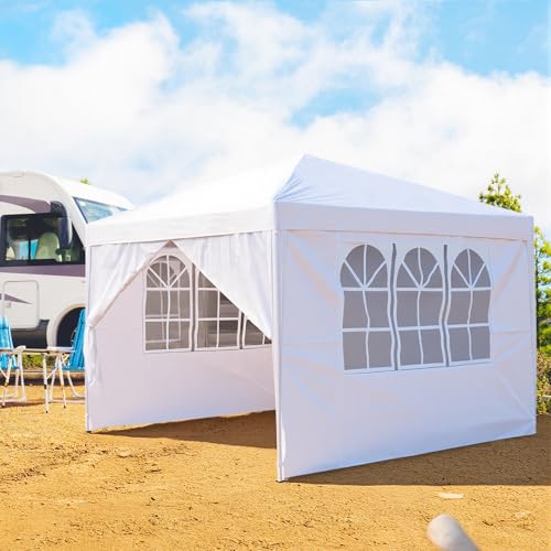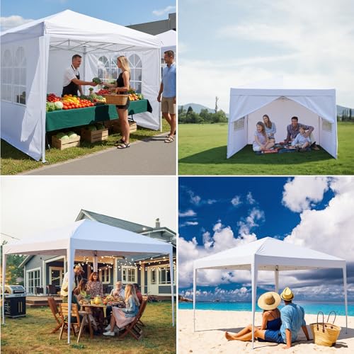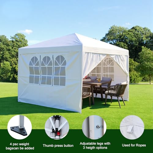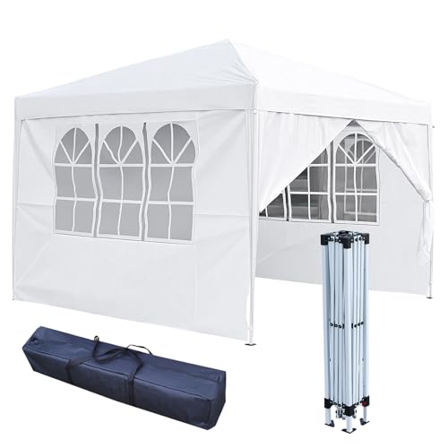 3x3m Pop Up Gazebo with 4 Removable Sidewalls, Portable Outdoor Party Tent with Carry Bag, All Weather Canopy for Camping, Markets, Garden Events (White)